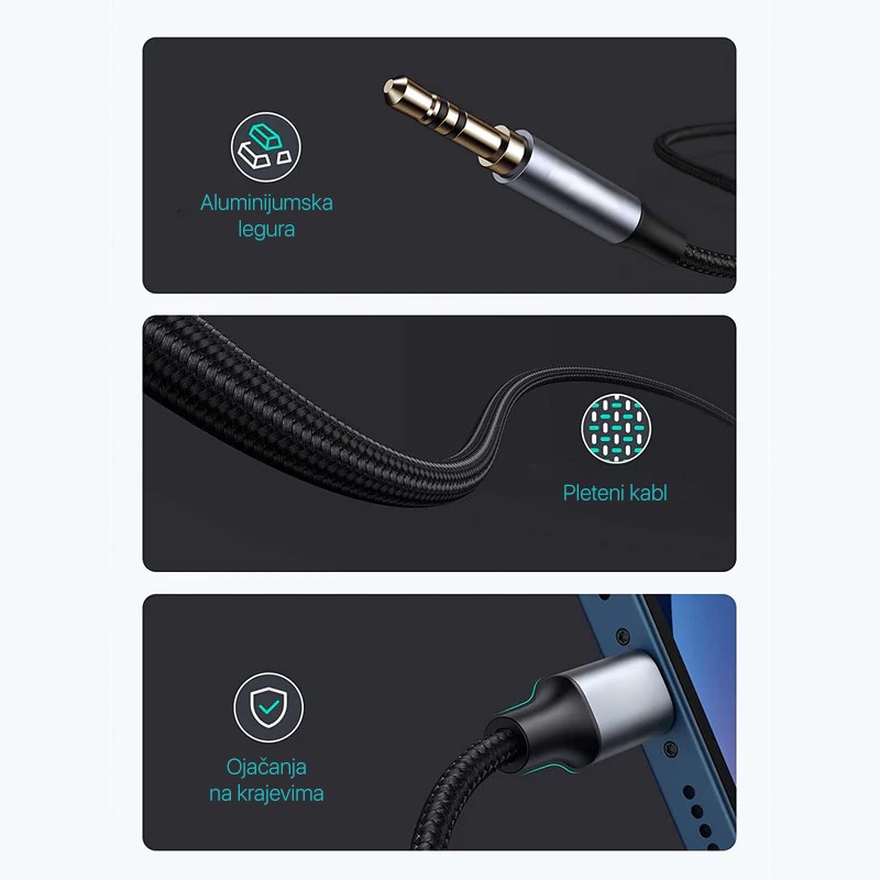 Adapter Pluginn 3.5mm na Lightning 1m crni
