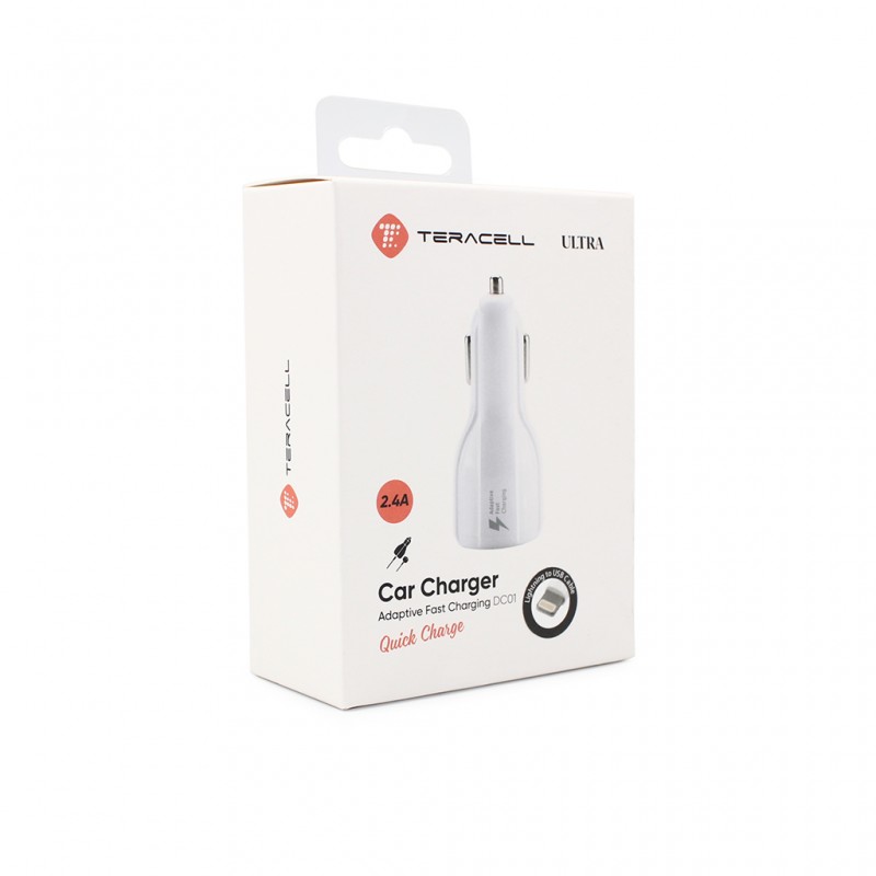 Auto punjac Teracell Ultra DC01 2.4A sa iPhone lightning kablom beli prodaja po AKCIJSKOJ ceni 2000 dinara u Beogradu i Srbiji. Originalno fabričko pakovanje Auto punjac Teracell Ultra DC01 2.4A sa iPhone lightning kablom beli. Isporuka po Srbiji za 24h. Poručite telefonom ili online - telekoplus.com