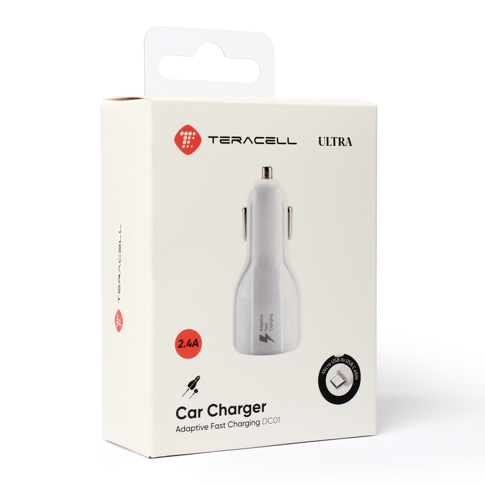 Auto punjac Teracell Ultra DC01 2.4A sa micro USB kablom beli prodaja po AKCIJSKOJ ceni 1000 dinara u Beogradu i Srbiji. Originalno fabričko pakovanje Auto punjac Teracell Ultra DC01 2.4A sa micro USB kablom beli. Isporuka po Srbiji za 24h. Poručite telefonom ili online - telekoplus.com