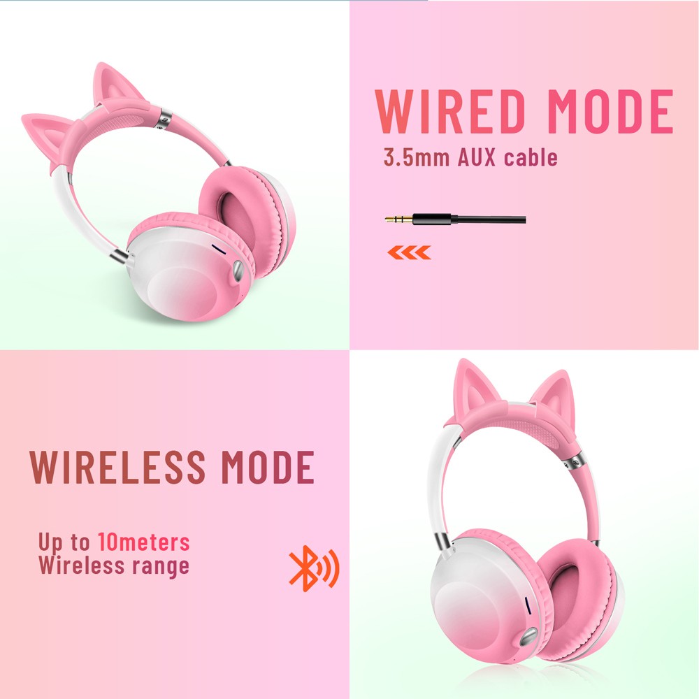 Bluetooth slusalice Cat Ear svetlo roze