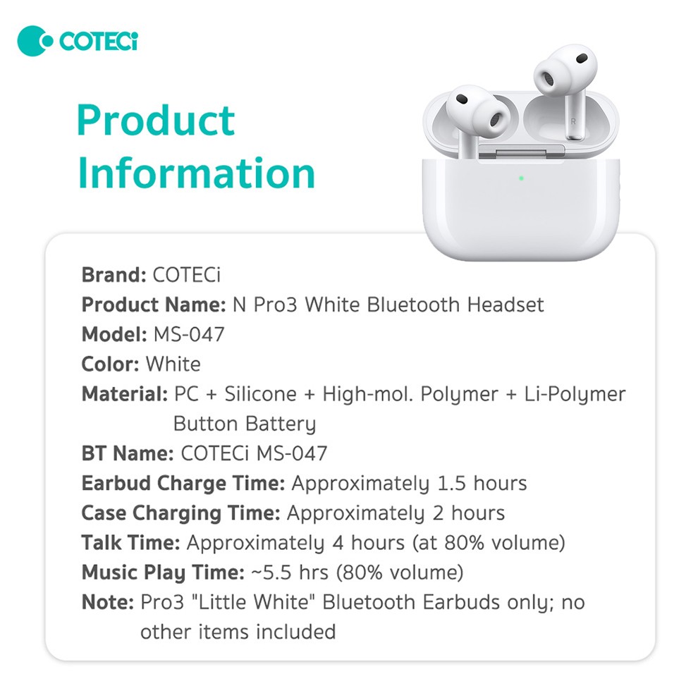 Bluetooth slusalice Coteci Smart Pods Pro 3 bele