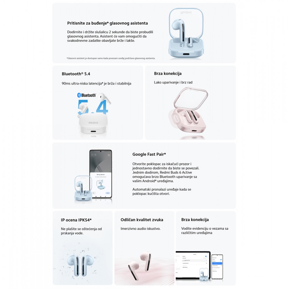 Uz "Bluetooth slusalice Xiaomi Redmi Buds 6 Active plave" preporučujemo: