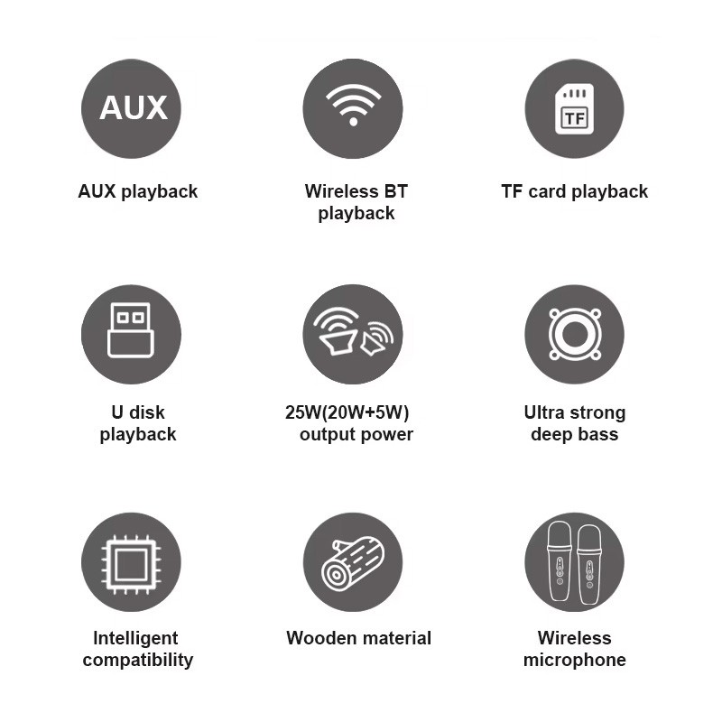 BT / USB / TF / AUX / MIC / KTV / EQ
