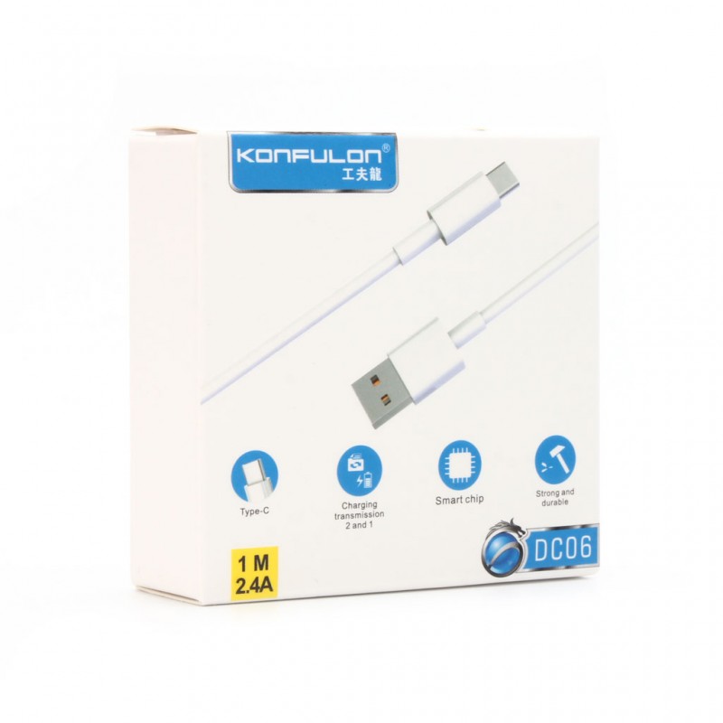 Data kabl KONFULON DC06 Type C beli 1m prodaja po AKCIJSKOJ ceni 1000 dinara u Beogradu i Srbiji. Originalno fabričko pakovanje Data kabl KONFULON DC06 Type C beli 1m. Isporuka po Srbiji za 24h. Poručite telefonom ili online - telekoplus.com