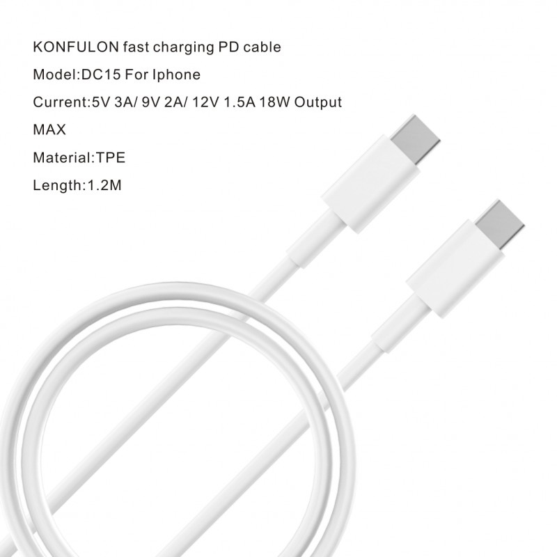 Data kabl KONFULON DC15 PD 18W Type C na Type C beli 1m