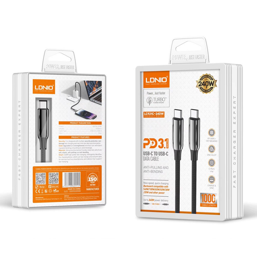 Data kabl LDNIO LC921c -240W Type C na Type C crni 1m