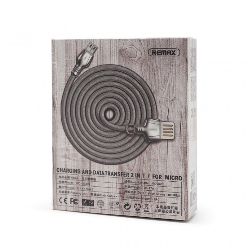 Data kabl REMAX King RC-063m micro USB srebrni 1m prodaja po AKCIJSKOJ ceni 1000 dinara u Beogradu i Srbiji. Originalno fabričko pakovanje Data kabl REMAX King RC-063m micro USB srebrni 1m. Isporuka po Srbiji za 24h. Poručite telefonom ili online - telekoplus.com