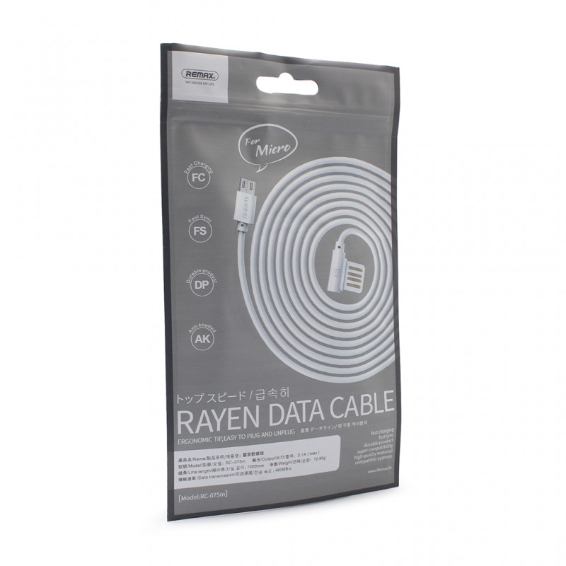 Data kabl REMAX Rayen RC-075m micro USB beli 1m prodaja po AKCIJSKOJ ceni 1000 dinara u Beogradu i Srbiji. Originalno fabričko pakovanje Data kabl REMAX Rayen RC-075m micro USB beli 1m. Isporuka po Srbiji za 24h. Poručite telefonom ili online - telekoplus.com