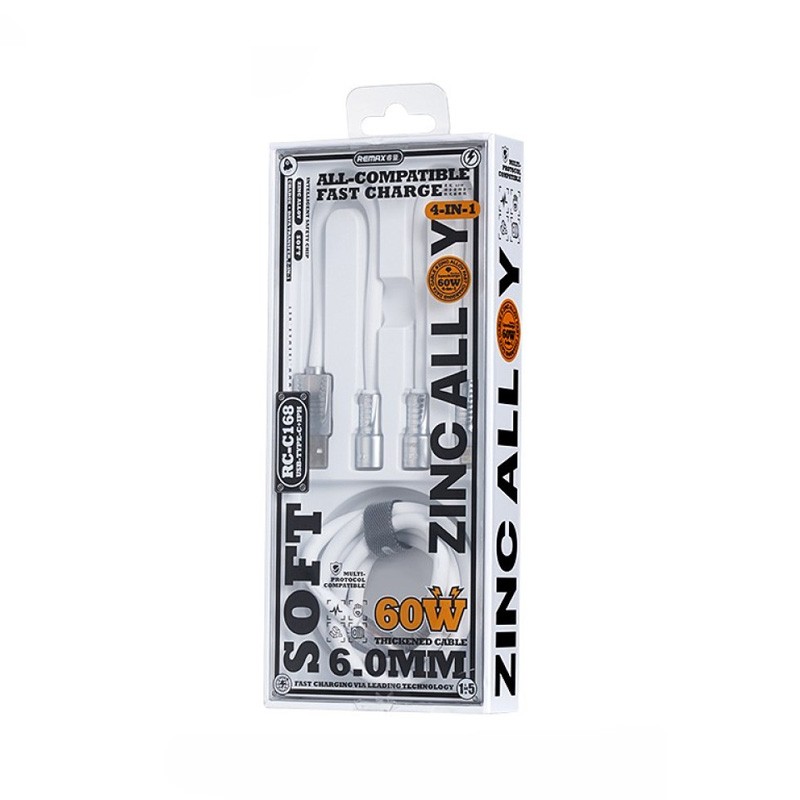 Data kabl REMAX RCC-168 Lyncharge Series 60w 4-in-1 Zinc Alloy beli prodaja po AKCIJSKOJ ceni 1500 dinara u Beogradu i Srbiji. Originalno fabričko pakovanje Data kabl REMAX RCC-168 Lyncharge Series 60w 4-in-1 Zinc Alloy beli. Isporuka po Srbiji za 24h. Poručite telefonom ili online - telekoplus.com