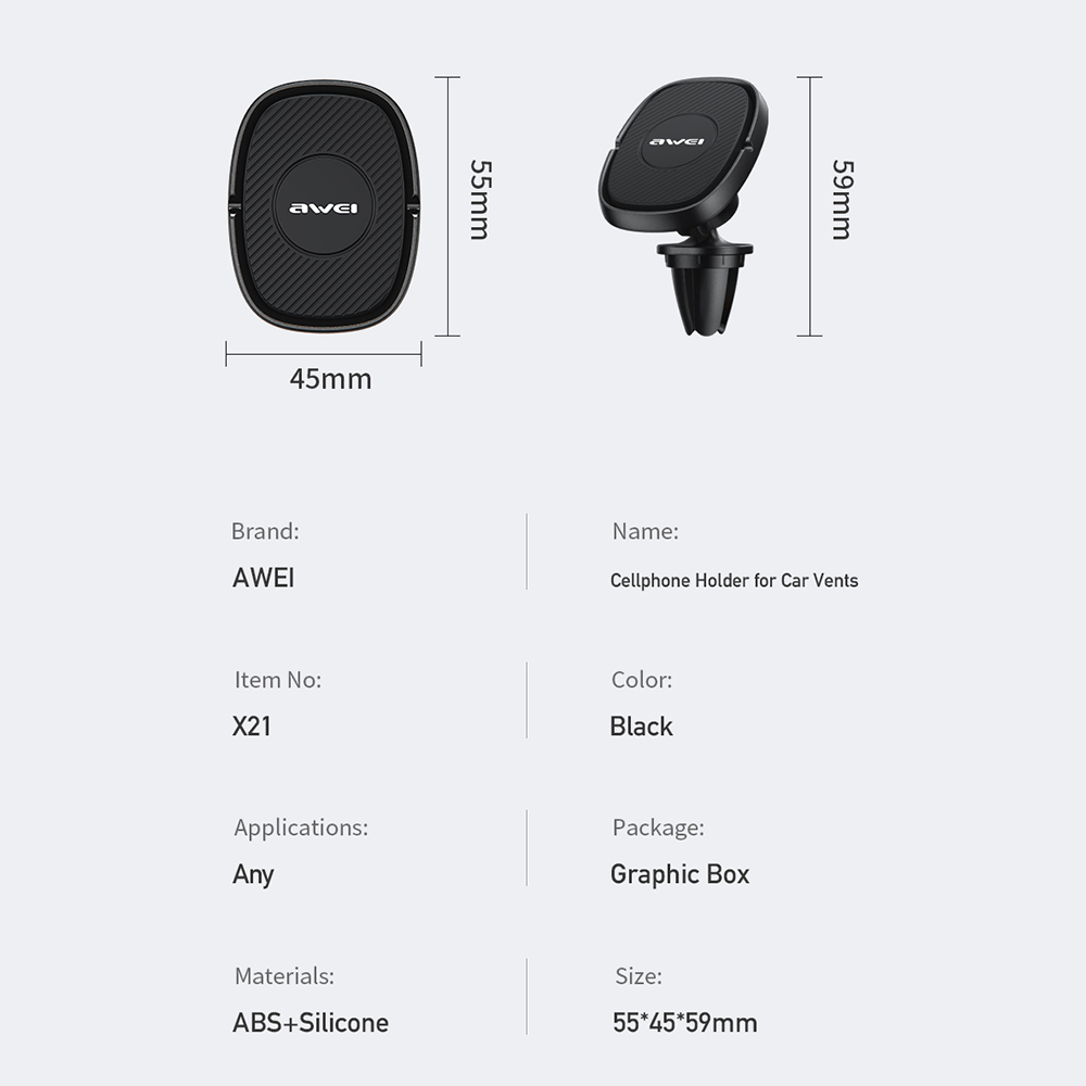 Drzac za mobilni telefon AWEI X21 magnet crni prodaja po AKCIJSKOJ ceni 3000 dinara u Beogradu i Srbiji. Originalno fabričko pakovanje Drzac za mobilni telefon AWEI X21 magnet crni. Isporuka po Srbiji za 24h. Poručite telefonom ili online - telekoplus.com