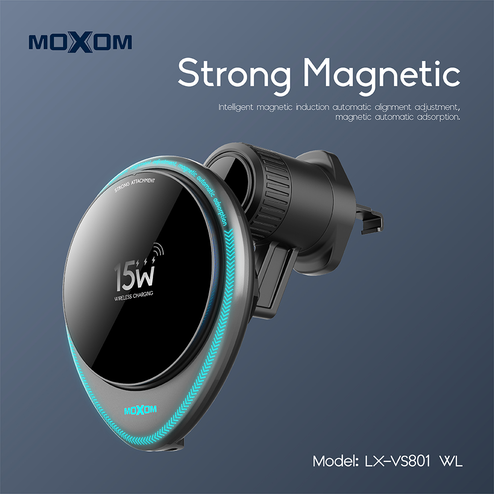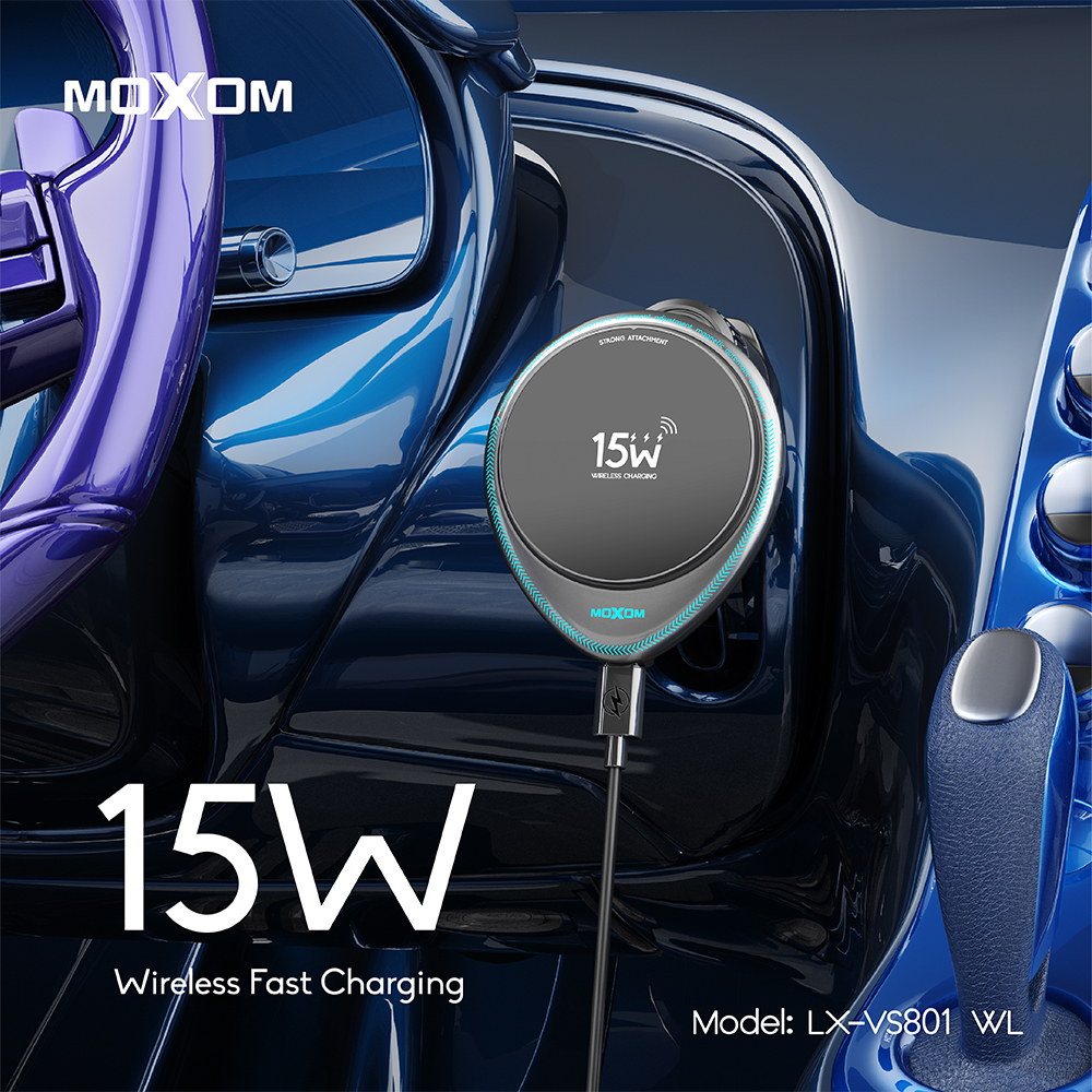 Drzac za mobilni telefon Moxom LX-VS801 sa bezicnim punjenjem 15W crni