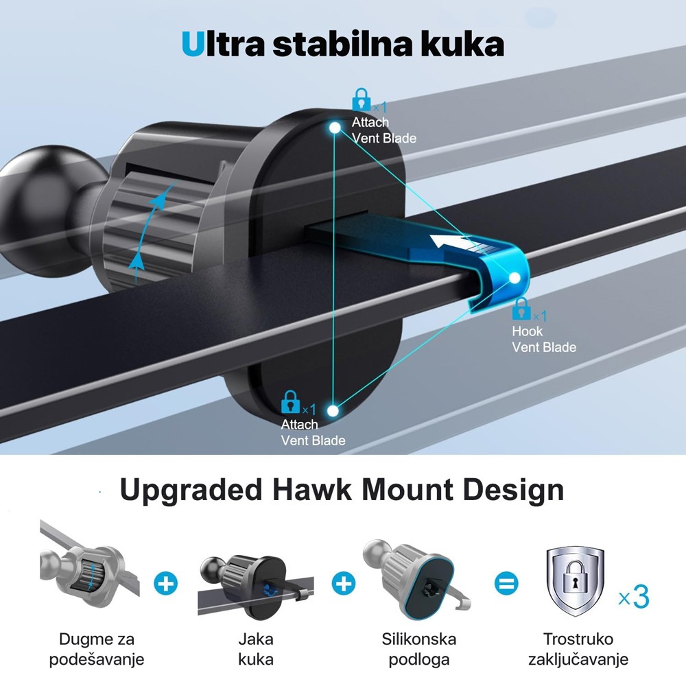 • Kompatibilan sa skoro svim mobilnim telefonima (Raspon: 5,5 - 9,5 cm)