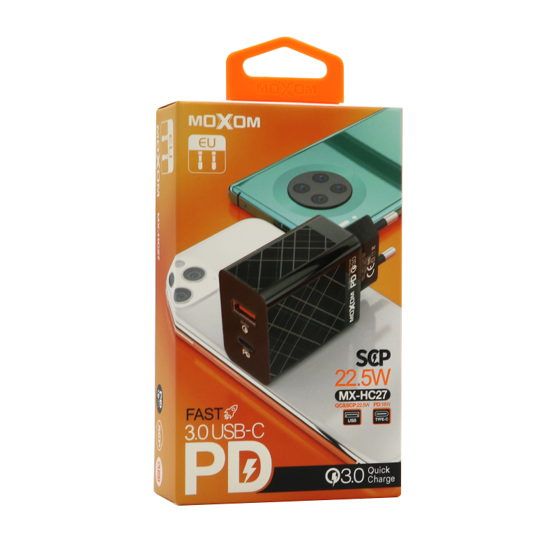 Kuciste punjaca Moxom MX-HC27 PD 3.0 QC 3.0 Super fast support fast charging crno prodaja po AKCIJSKOJ ceni 2000 dinara u Beogradu i Srbiji. Originalno fabričko pakovanje Kuciste punjaca Moxom MX-HC27 PD 3.0 QC 3.0 Super fast support fast charging crno. Isporuka po Srbiji za 24h. Poručite telefonom ili online - telekoplus.com