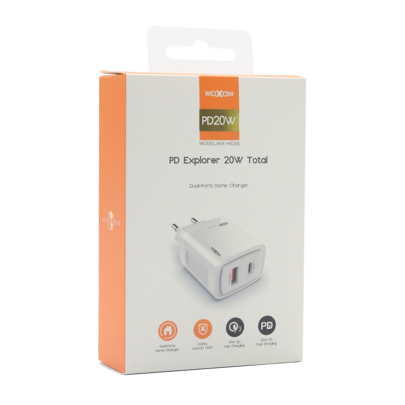 Kuciste punjaca MOXOM MX-HC66 PD+USB 20W belo prodaja po AKCIJSKOJ ceni 2000 dinara u Beogradu i Srbiji. Originalno fabričko pakovanje Kuciste punjaca MOXOM MX-HC66 PD+USB 20W belo. Isporuka po Srbiji za 24h. Poručite telefonom ili online - telekoplus.com