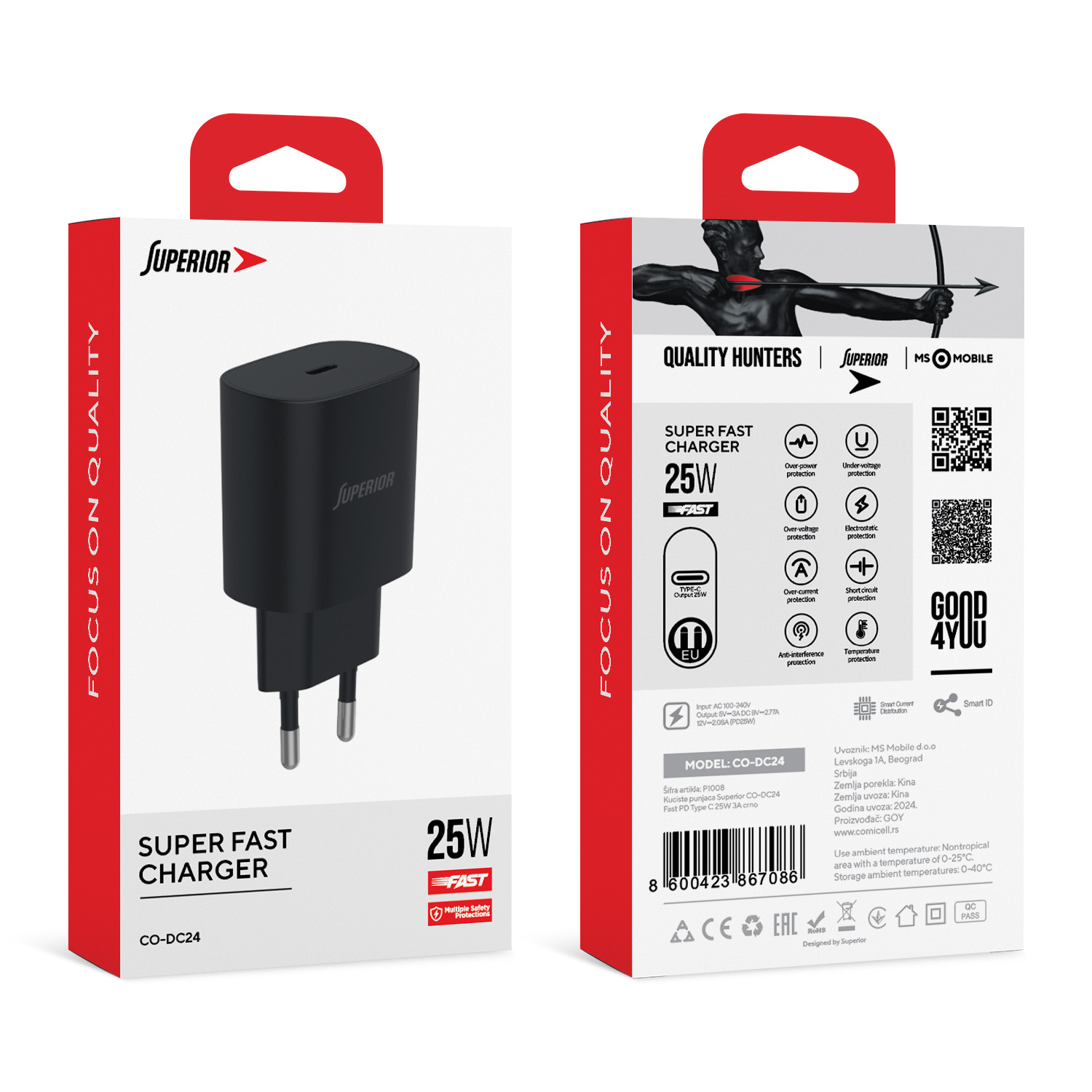 Kuciste punjaca Superior CO-DC24 Fast PD Type C 25W 3A crno