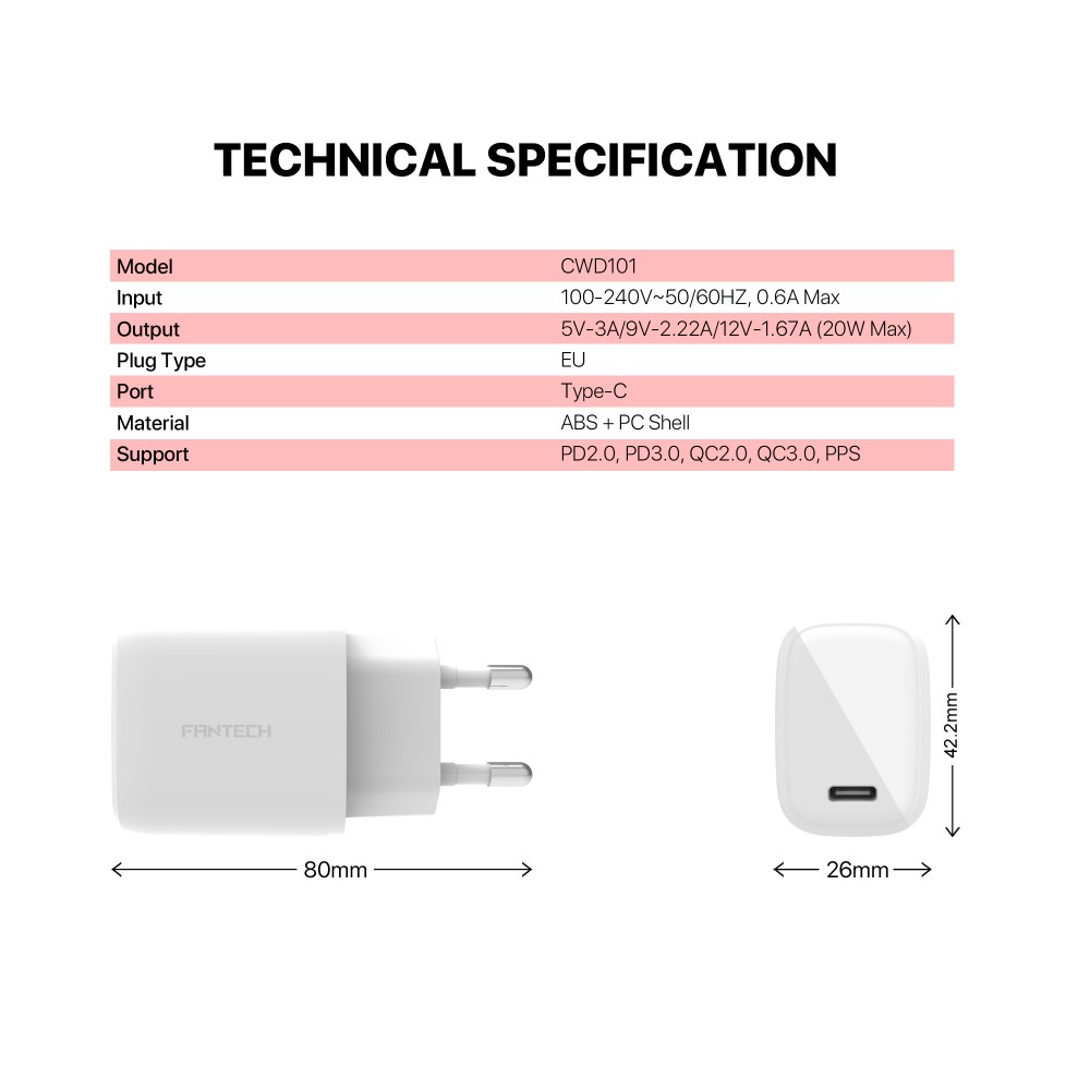 Kucni punjac Fantech PowerGO CWD101 PD 20W beli prodaja po AKCIJSKOJ ceni 4000 dinara u Beogradu i Srbiji. Originalno fabričko pakovanje Kucni punjac Fantech PowerGO CWD101 PD 20W beli. Isporuka po Srbiji za 24h. Poručite telefonom ili online - telekoplus.com