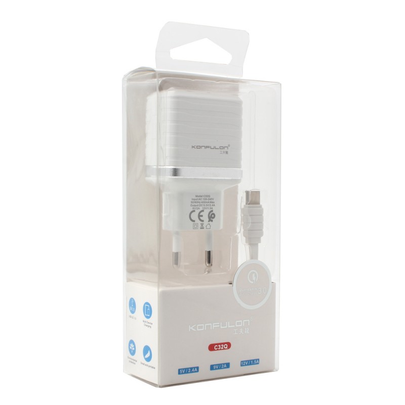 Kucni punjac KONFULON C32Q QC 3.0, 18W, sa Type C kablom beli prodaja po AKCIJSKOJ ceni 3000 dinara u Beogradu i Srbiji. Originalno fabričko pakovanje Kucni punjac KONFULON C32Q QC 3.0, 18W, sa Type C kablom beli. Isporuka po Srbiji za 24h. Poručite telefonom ili online - telekoplus.com