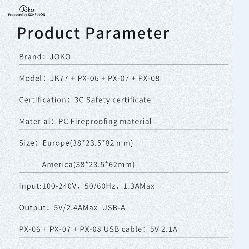 Kucni punjac KONFULON JK77 2.4A sa iPhone lightning kablom beli 1m
