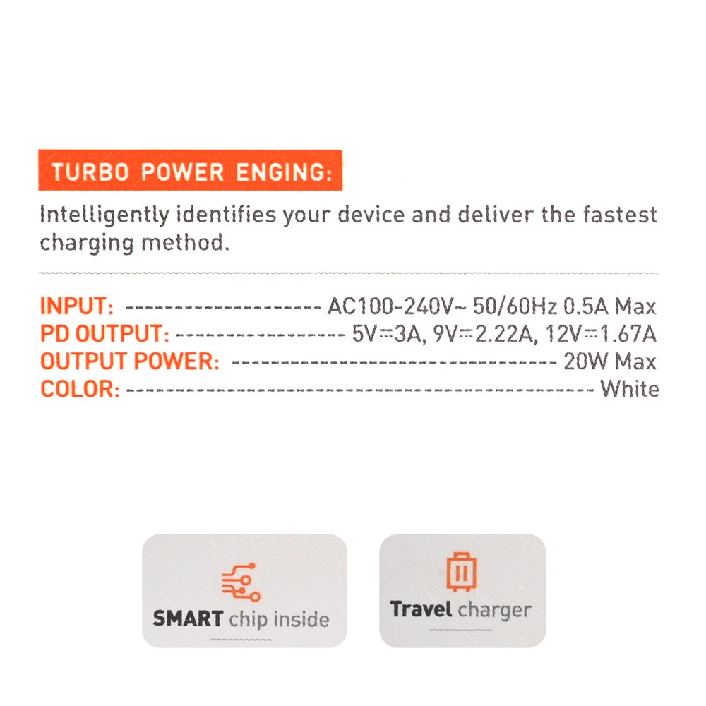 Kucni Punjac Pluginn AJ-20 A2347 EMC3621 PD Fast 20W za iPhone 11-14 sa PD Type C kablom CE beli