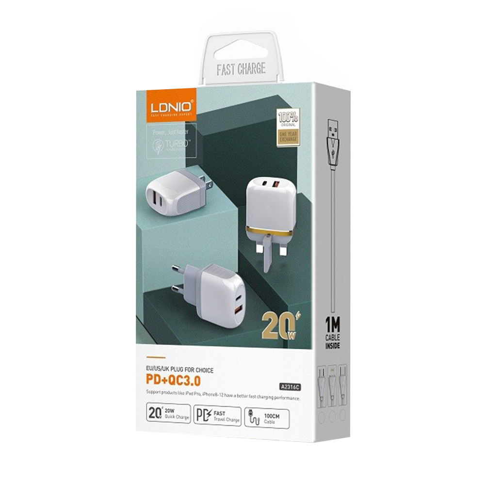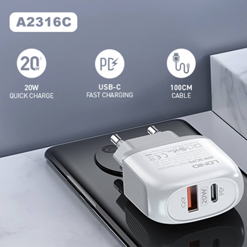 Kucni punjac LDNIO A2316C QC3.0 18W, PD 20W Type-C na Type-C beli prodaja po AKCIJSKOJ ceni 2000 dinara u Beogradu i Srbiji. Originalno fabričko pakovanje Kucni punjac LDNIO A2316C QC3.0 18W, PD 20W Type-C na Type-C beli. Isporuka po Srbiji za 24h. Poručite telefonom ili online - telekoplus.com