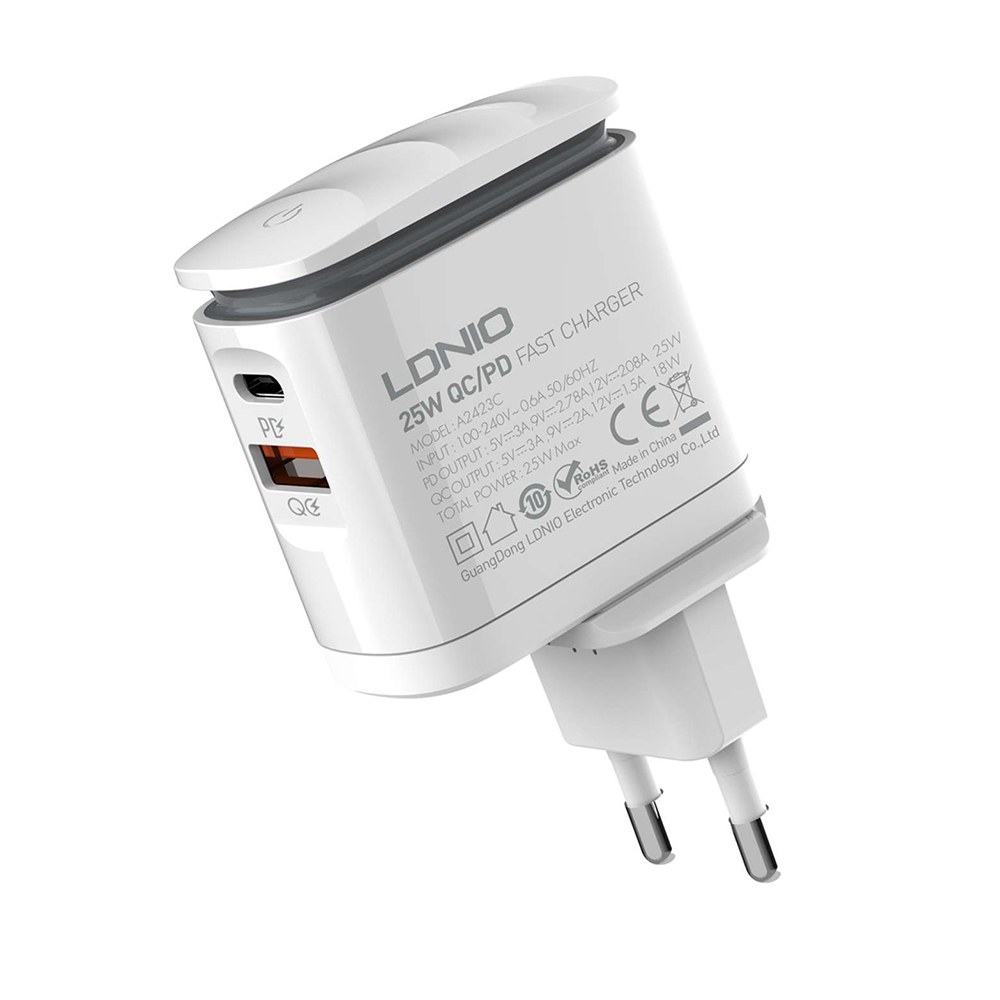 Kucni punjac LDNIO A2423C QC3.0 18W, PD 25W Type-C na Lightning beli
