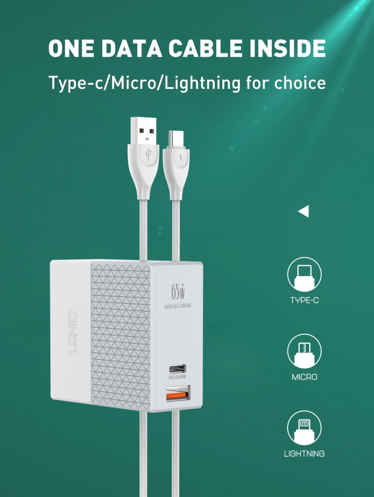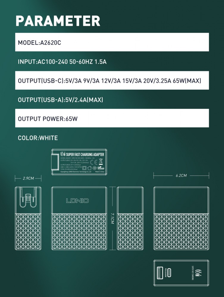 Kucni punjac LDNIO A2620C PD+QC3.0 65W sa Type C na Type C kablom prodaja po AKCIJSKOJ ceni 5000 dinara u Beogradu i Srbiji. Originalno fabričko pakovanje Kucni punjac LDNIO A2620C PD+QC3.0 65W sa Type C na Type C kablom. Isporuka po Srbiji za 24h. Poručite telefonom ili online - telekoplus.com