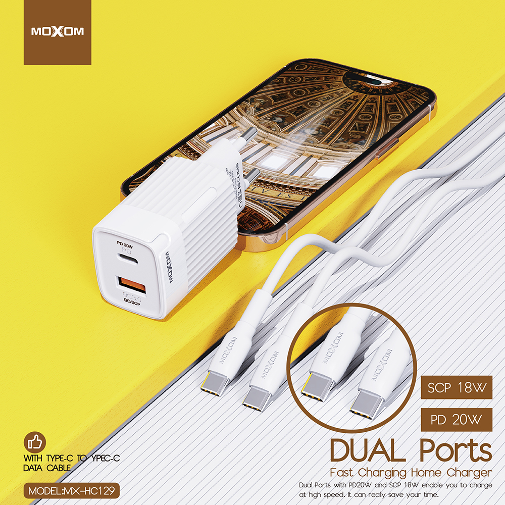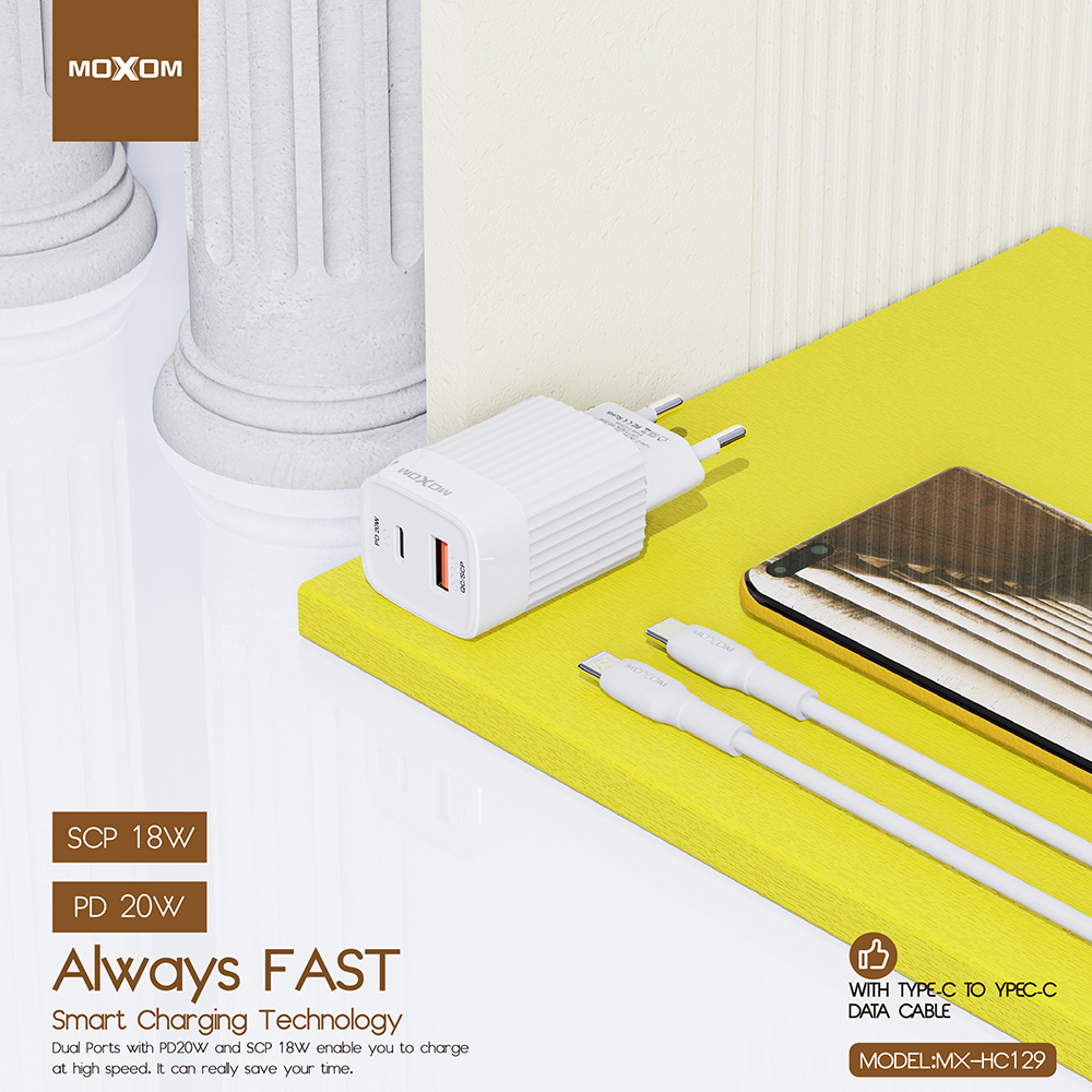 Kucni punjac Moxom MX-HC129 20W Type-C na Type-C beli