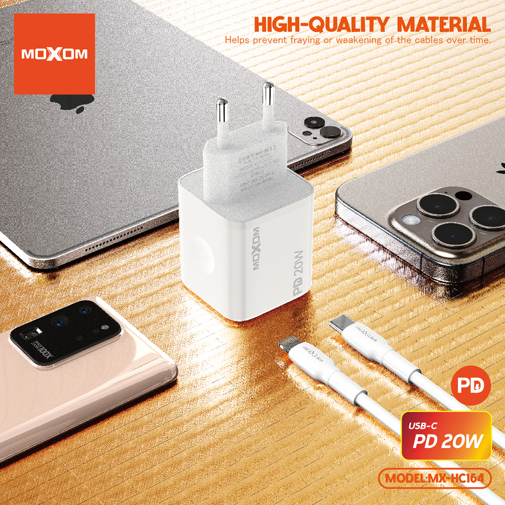 Kucni punjac Moxom MX-HC164 PD 20W Type-C na Lightning beli prodaja po AKCIJSKOJ ceni 2000 dinara u Beogradu i Srbiji. Originalno fabričko pakovanje Kucni punjac Moxom MX-HC164 PD 20W Type-C na Lightning beli. Isporuka po Srbiji za 24h. Poručite telefonom ili online - telekoplus.com
