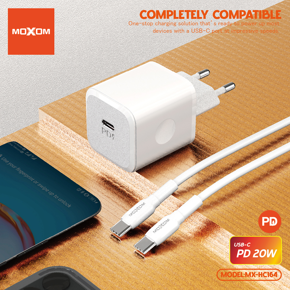 Kucni punjac Moxom MX-HC164 PD 20W Type-C na Type-C beli