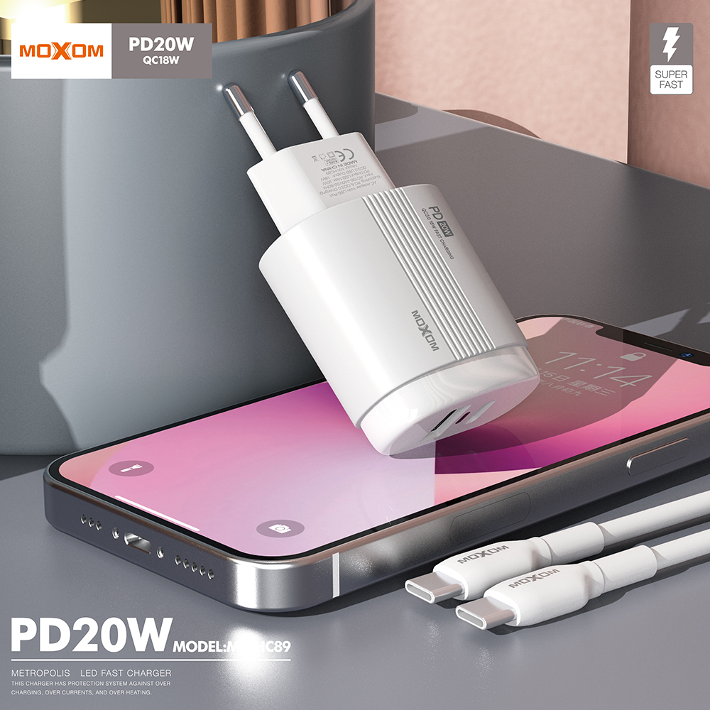 Kucni punjac Moxom MX-HC89 20W Type-C na Type-C beli