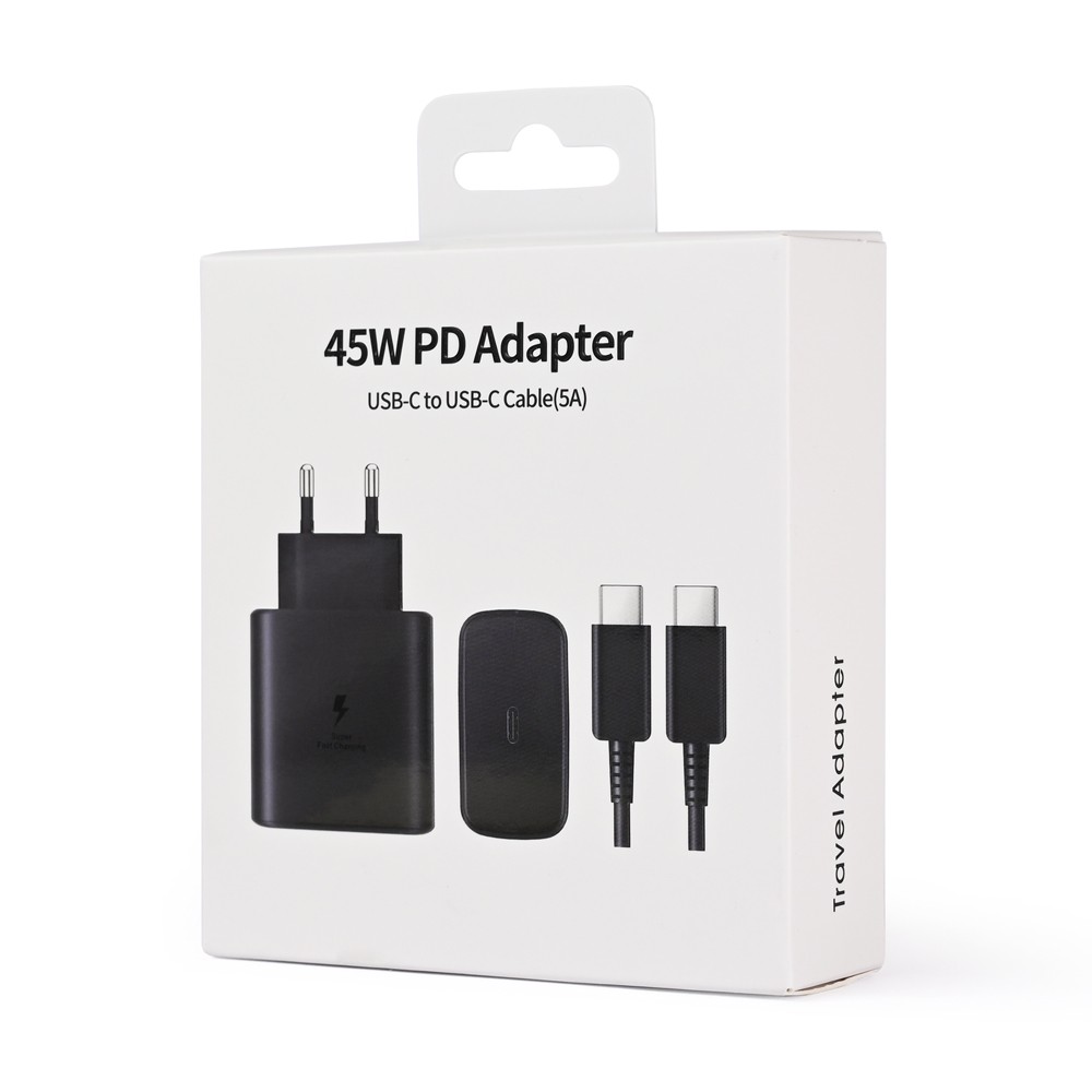 Kucni punjac PD Fast charger 45W za Samsung sa PD Type C kablom CE crni