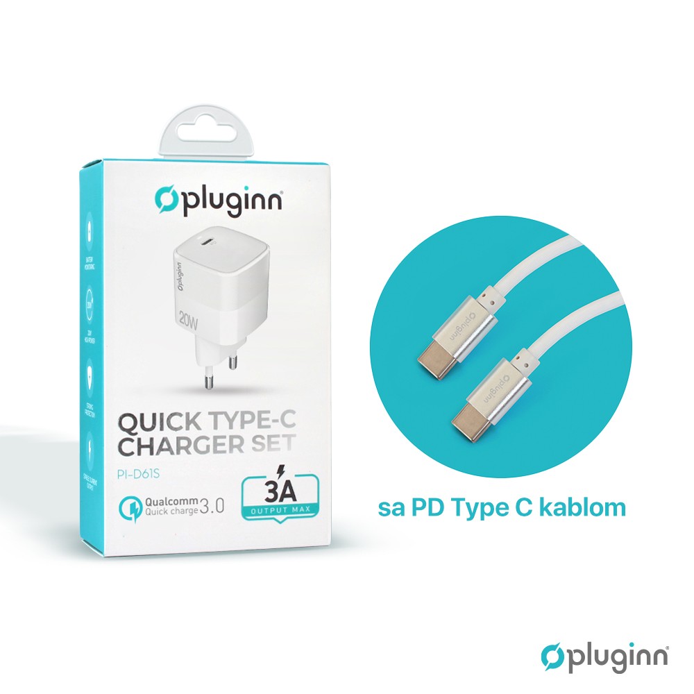 Kucni punjac Pluginn PI-D61S, PD3.0, PPS, 20W sa PD Type C kablom beli CE