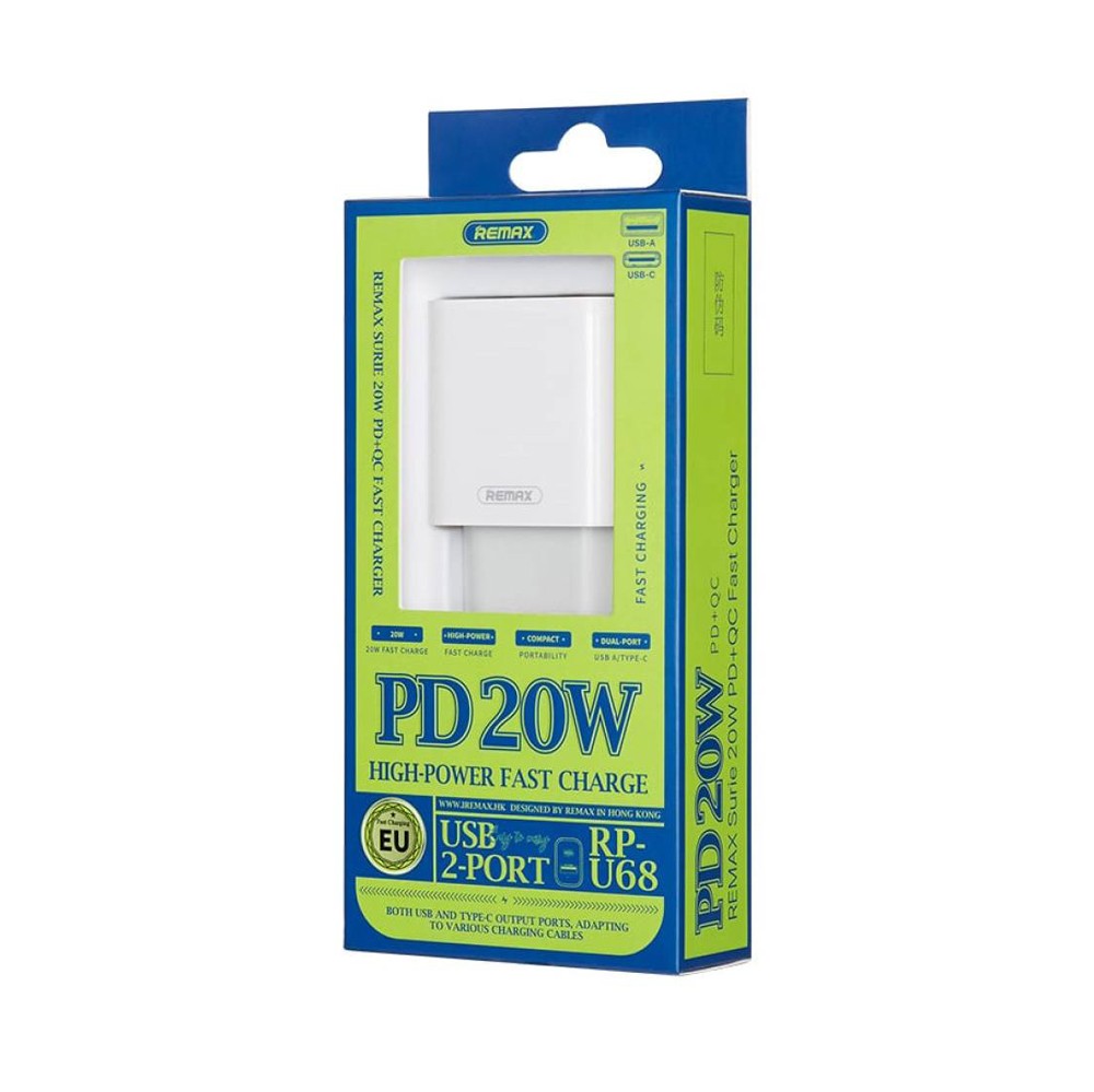 Kucni punjac REMAX RP-U68 QC+PD Fast charger 20W beli prodaja po AKCIJSKOJ ceni 4000 dinara u Beogradu i Srbiji. Originalno fabričko pakovanje Kucni punjac REMAX RP-U68 QC+PD Fast charger 20W beli. Isporuka po Srbiji za 24h. Poručite telefonom ili online - telekoplus.com