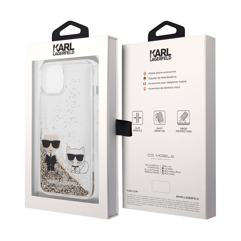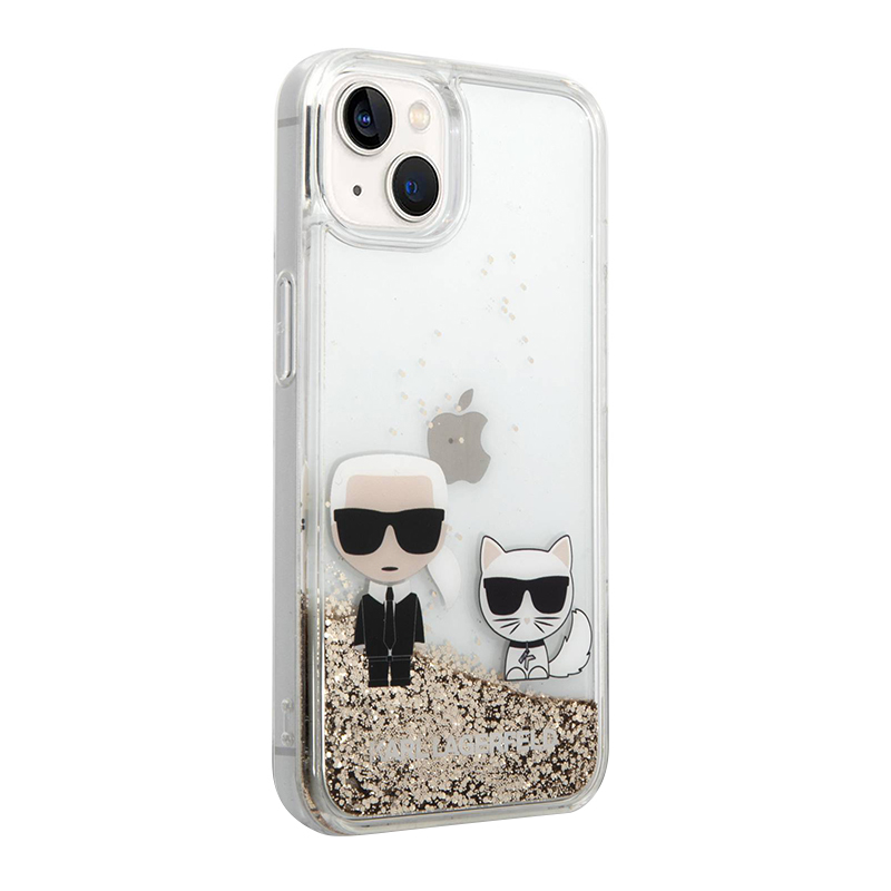 Maska Futrola Karl Lagerfeld Liquid Glitter Case Karl And Choupette za Iphone 14 zlatna Full ORG (KLHCP14SGKCD)