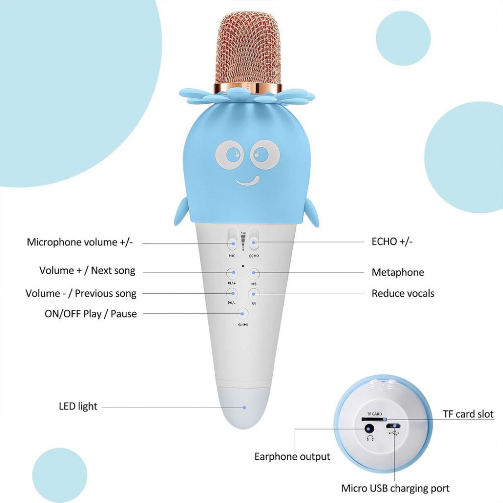 Opremljen LED svetlima u 7 boja, ovaj mikrofon sa zvučnikom pruža uravnotežen i živopisan svetlosni efekat.