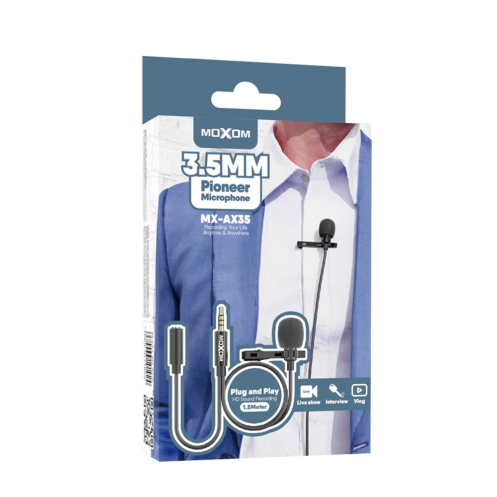 Mikrofon Moxom MX-AX35 3.5mm crni prodaja po AKCIJSKOJ ceni 4000 dinara u Beogradu i Srbiji. Originalno fabričko pakovanje Mikrofon Moxom MX-AX35 3.5mm crni. Isporuka po Srbiji za 24h. Poručite telefonom ili online - telekoplus.com