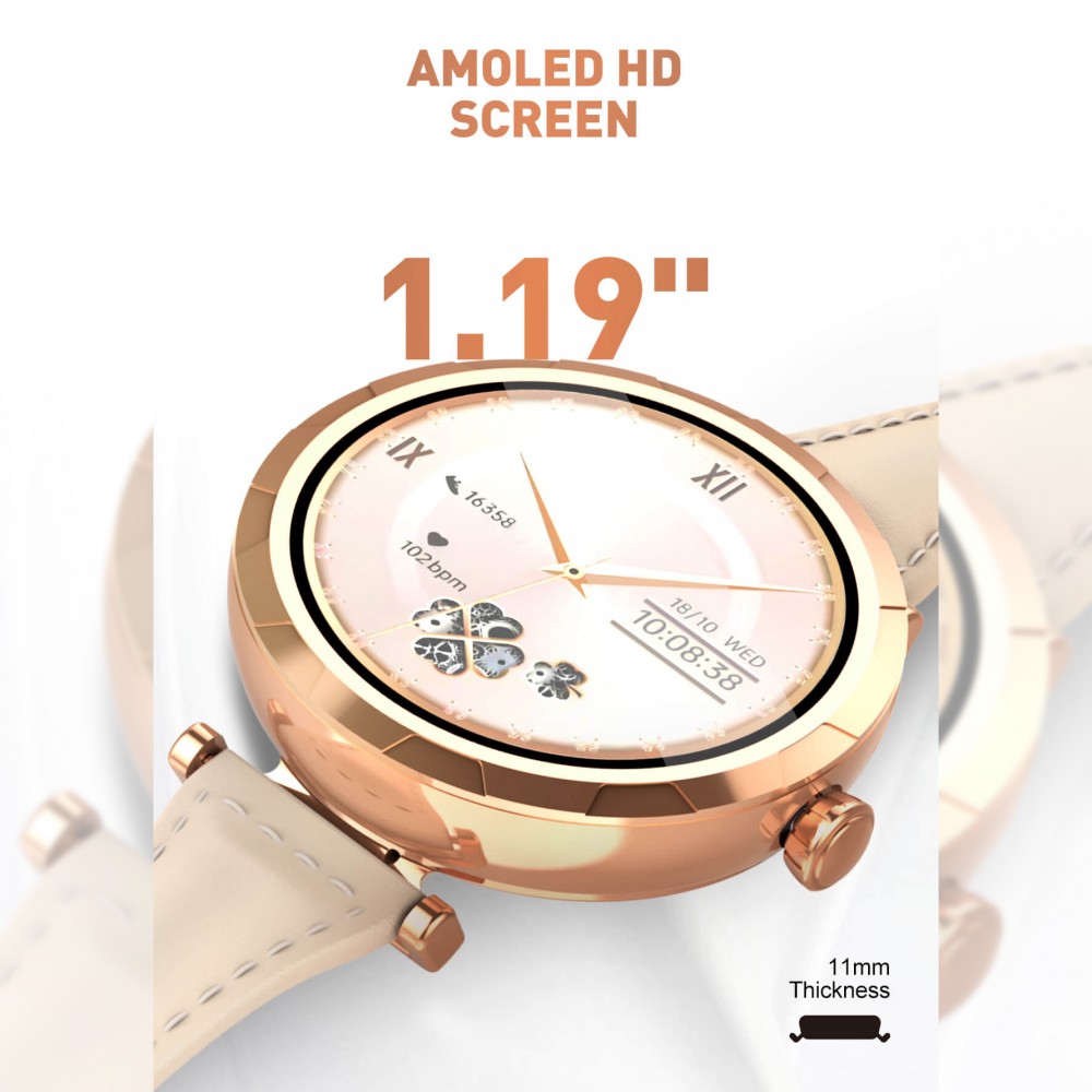 Poseduje 1.19-inčni AMOLED ekran osetljiv na dodir, sa kristalno jasnom slikom.