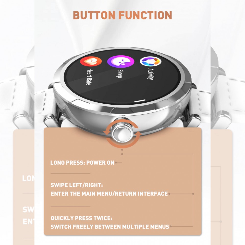 Poseduje 1.19-inčni AMOLED ekran osetljiv na dodir, sa kristalno jasnom slikom.