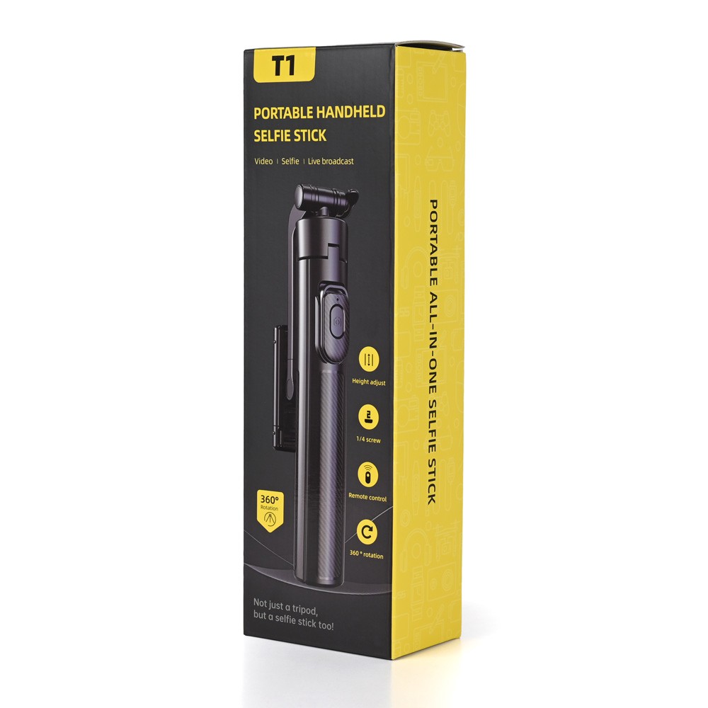 Selfie stick T1 + tripod crni prodaja po AKCIJSKOJ ceni 4000 dinara u Beogradu i Srbiji. Originalno fabričko pakovanje Selfie stick T1 + tripod crni. Isporuka po Srbiji za 24h. Poručite telefonom ili online - telekoplus.com