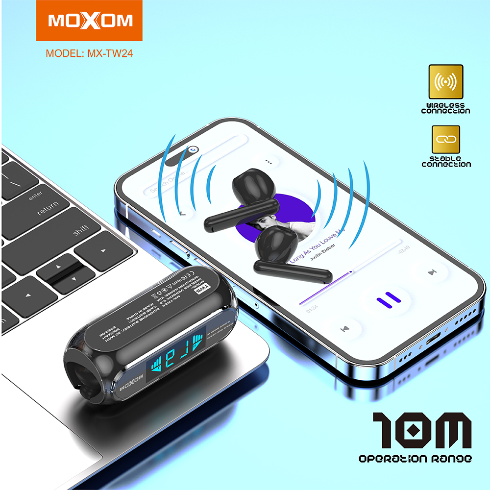 Slusalice Bluetooth Airpods Moxom MX-TW24 crne prodaja po AKCIJSKOJ ceni 4000 dinara u Beogradu i Srbiji. Originalno fabričko pakovanje Slusalice Bluetooth Airpods Moxom MX-TW24 crne. Isporuka po Srbiji za 24h. Poručite telefonom ili online - telekoplus.com