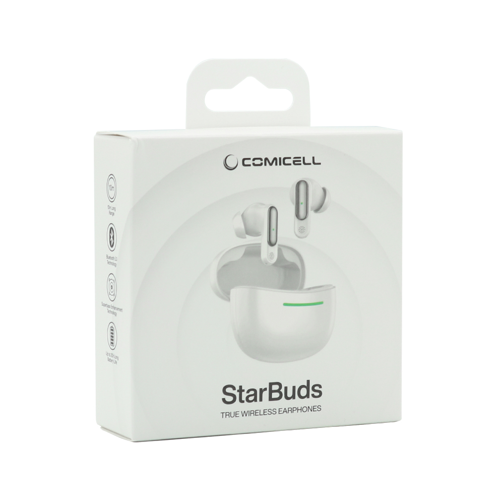 Slusalice Bluetooth Comicell StarBuds bele prodaja po AKCIJSKOJ ceni 3000 dinara u Beogradu i Srbiji. Originalno fabričko pakovanje Slusalice Bluetooth Comicell StarBuds bele. Isporuka po Srbiji za 24h. Poručite telefonom ili online - telekoplus.com