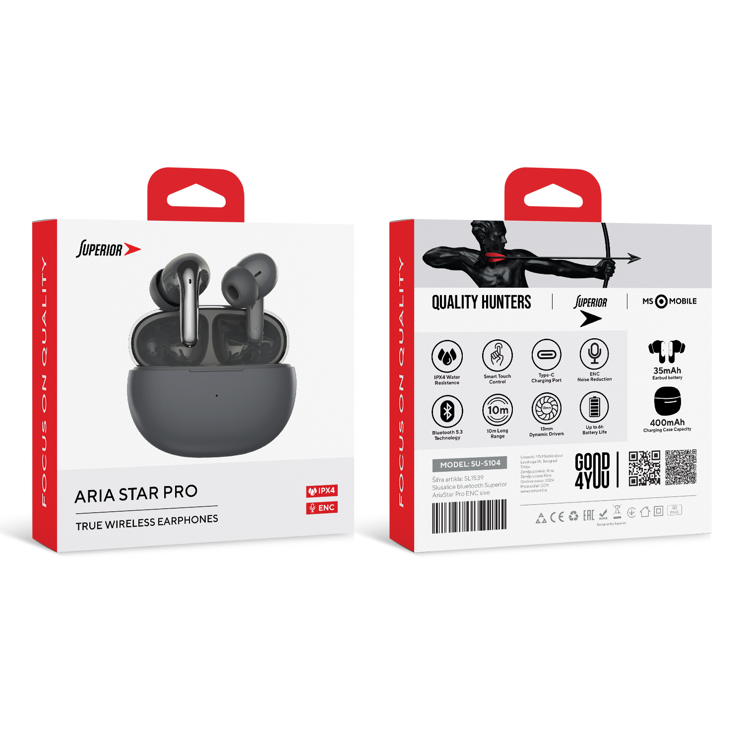 Slusalice bluetooth Superior AriaStar Pro ENC sive prodaja po AKCIJSKOJ ceni 5000 dinara u Beogradu i Srbiji. Originalno fabričko pakovanje Slusalice bluetooth Superior AriaStar Pro ENC sive. Isporuka po Srbiji za 24h. Poručite telefonom ili online - telekoplus.com