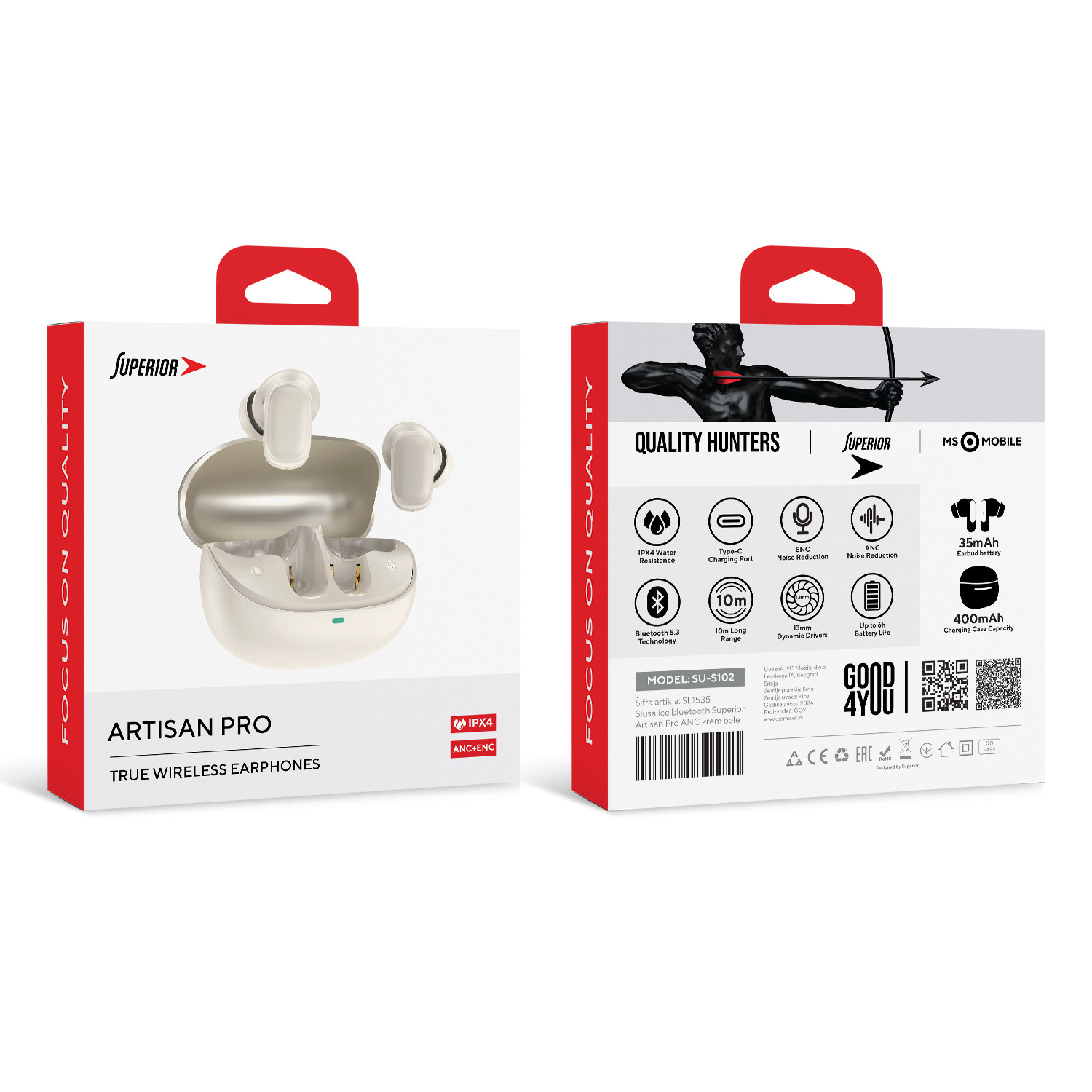 Slusalice bluetooth Superior Artisan Pro ANC+ENC krem prodaja po AKCIJSKOJ ceni 6000 dinara u Beogradu i Srbiji. Originalno fabričko pakovanje Slusalice bluetooth Superior Artisan Pro ANC+ENC krem. Isporuka po Srbiji za 24h. Poručite telefonom ili online - telekoplus.com