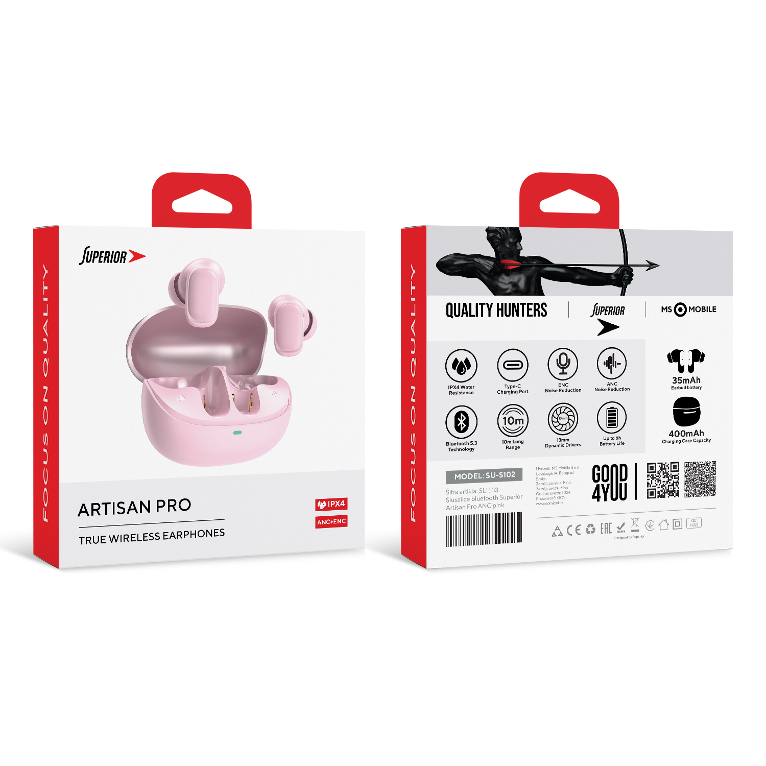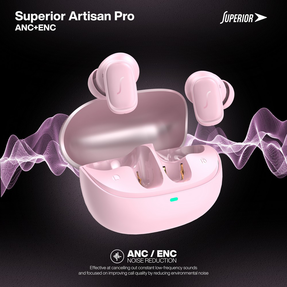 Slusalice bluetooth Superior Artisan Pro ANC+ENC pink prodaja po AKCIJSKOJ ceni 6000 dinara u Beogradu i Srbiji. Originalno fabričko pakovanje Slusalice bluetooth Superior Artisan Pro ANC+ENC pink. Isporuka po Srbiji za 24h. Poručite telefonom ili online - telekoplus.com