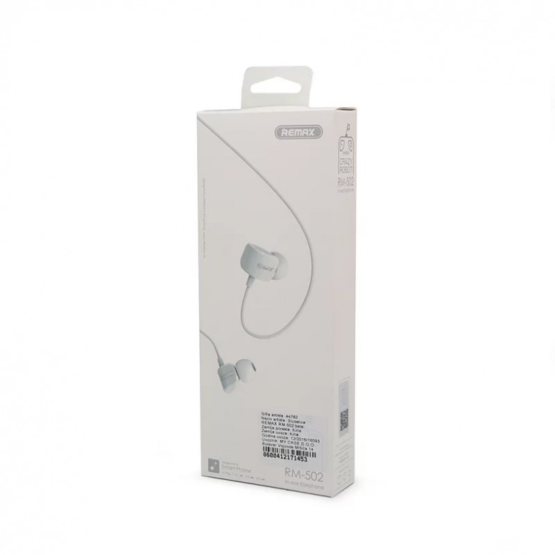 Slusalice REMAX RM-502 bele prodaja po AKCIJSKOJ ceni 3000 dinara u Beogradu i Srbiji. Originalno fabričko pakovanje Slusalice REMAX RM-502 bele. Isporuka po Srbiji za 24h. Poručite telefonom ili online - telekoplus.com
