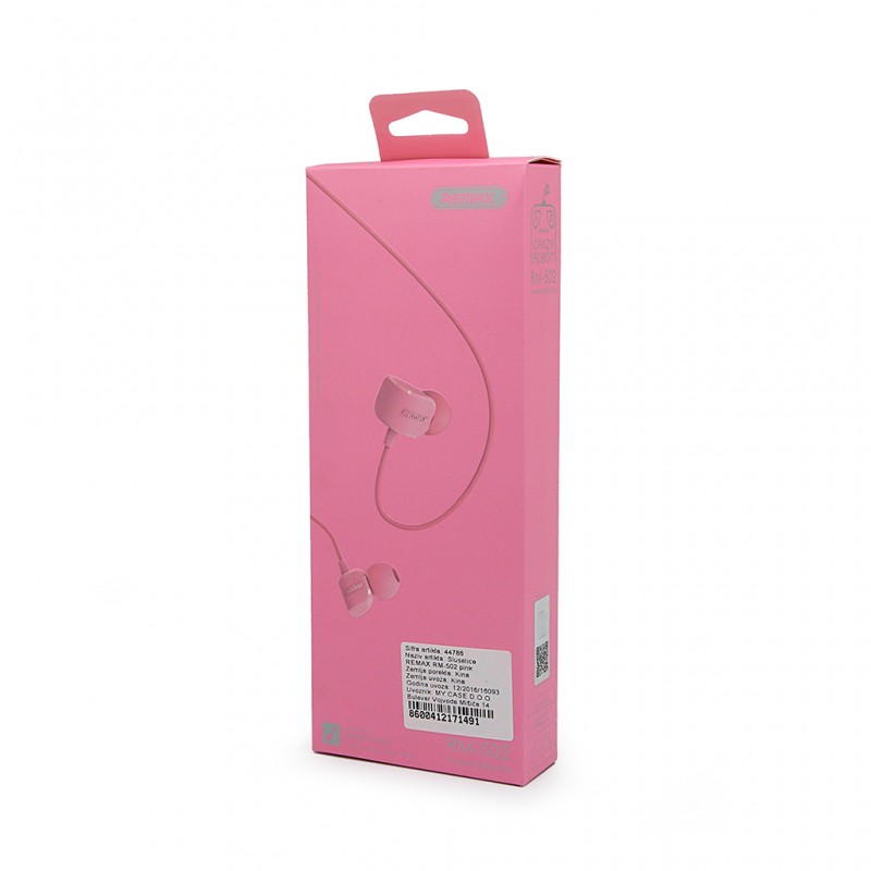 Slusalice REMAX RM-502 pink prodaja po AKCIJSKOJ ceni 2000 dinara u Beogradu i Srbiji. Originalno fabričko pakovanje Slusalice REMAX RM-502 pink. Isporuka po Srbiji za 24h. Poručite telefonom ili online - telekoplus.com