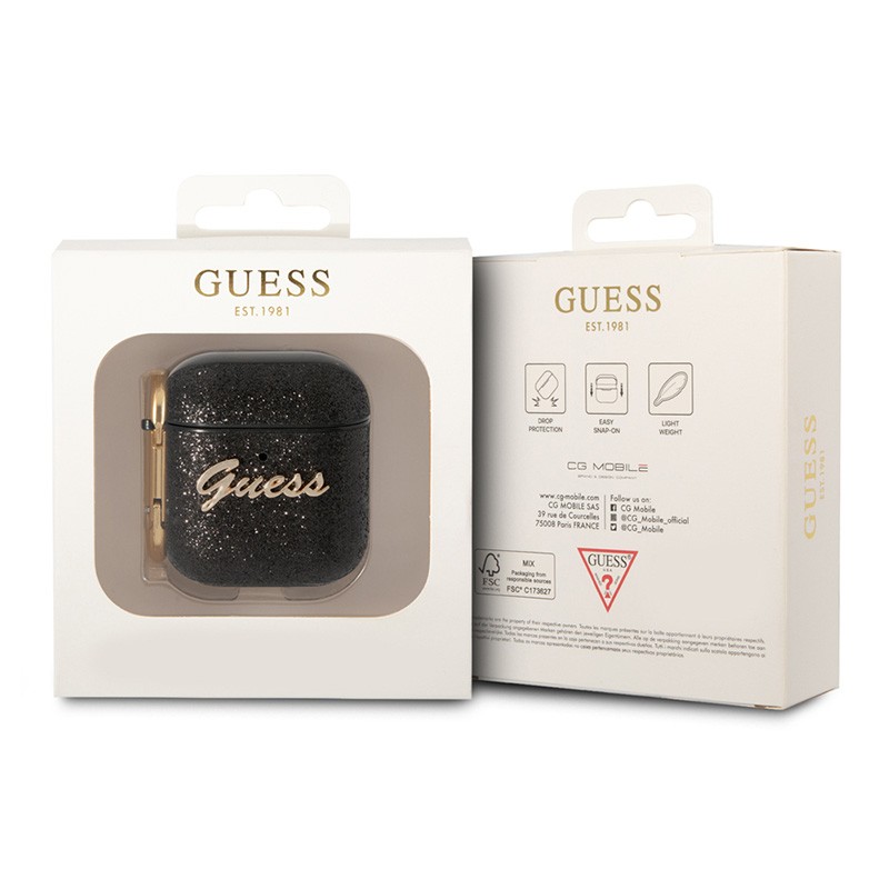Torbica Guess za Airpods 1/2 PU Glitter Flake crna (GUA2HGGSHK)
