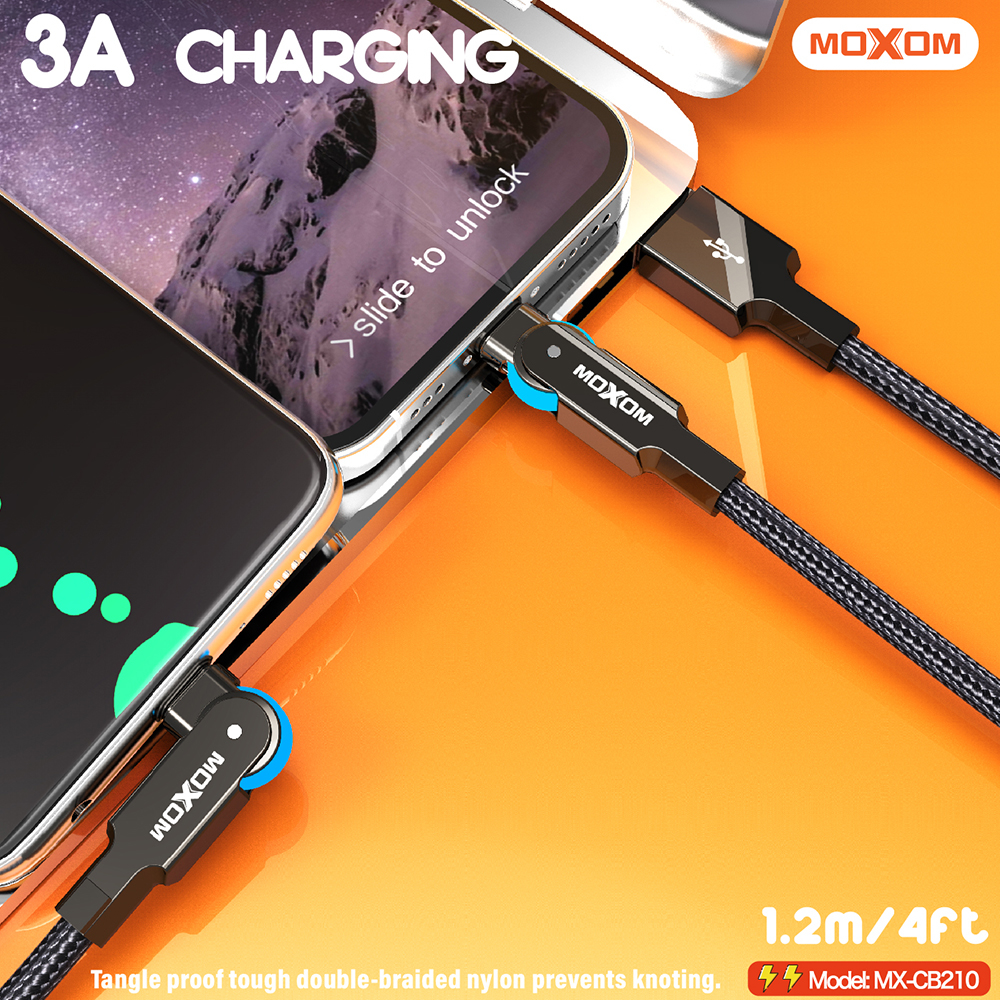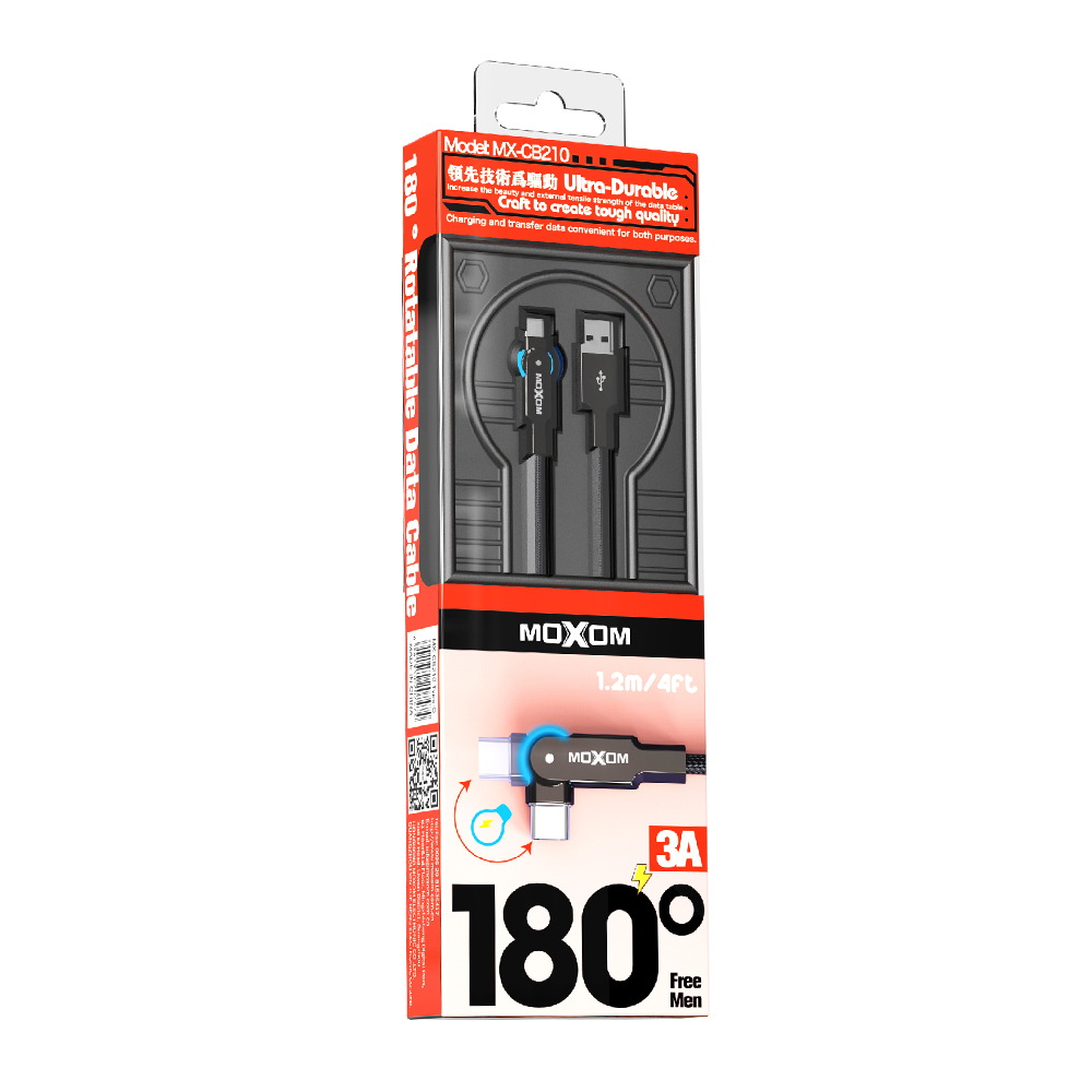 USB data kabal Moxom MX-CB210 180 Rotation 3A Type C 1.2m crni