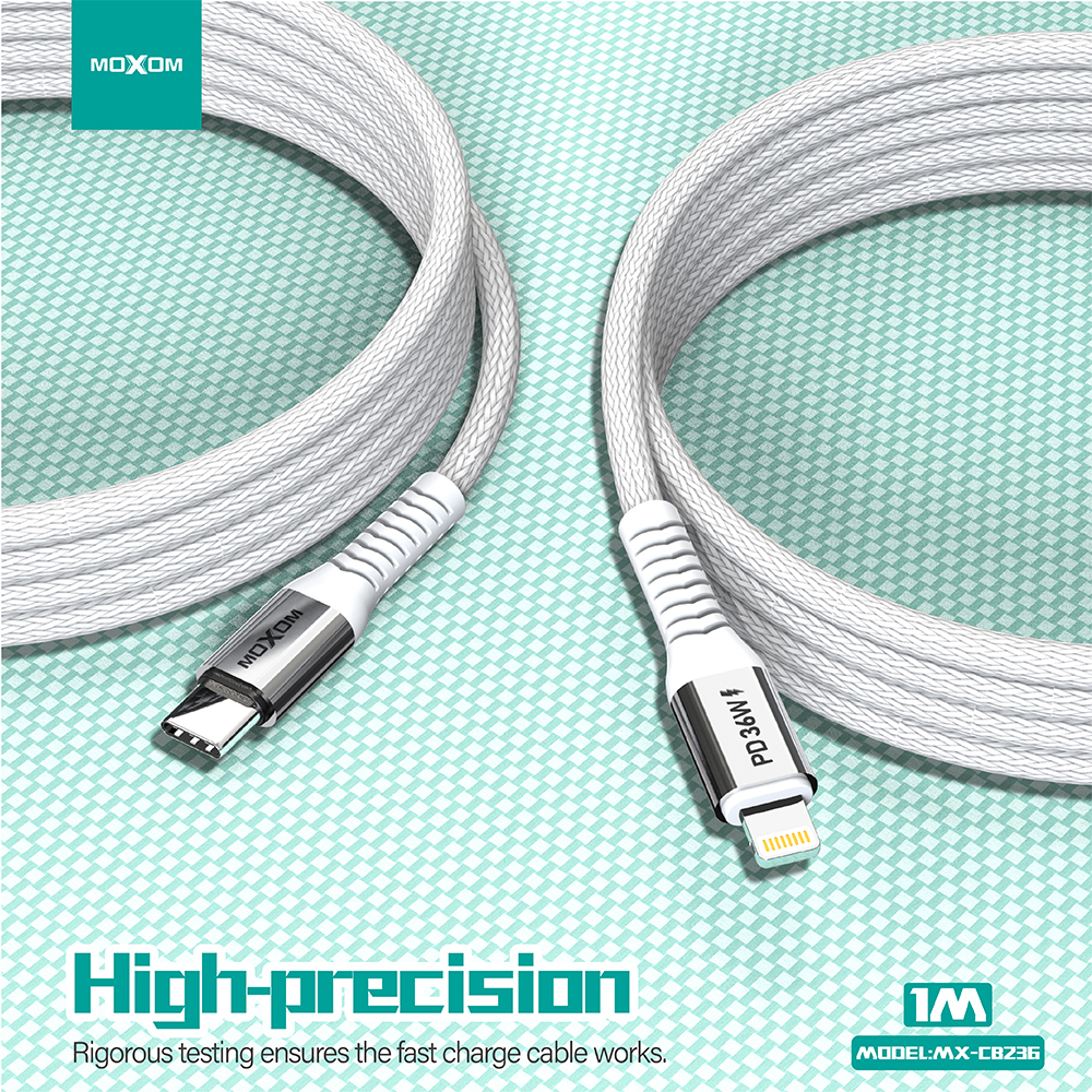 USB data kabal Moxom MX-CB236 PD 36W Type-C na lightning 1m beli prodaja po AKCIJSKOJ ceni 1500 dinara u Beogradu i Srbiji. Originalno fabričko pakovanje USB data kabal Moxom MX-CB236 PD 36W Type-C na lightning 1m beli. Isporuka po Srbiji za 24h. Poručite telefonom ili online - telekoplus.com