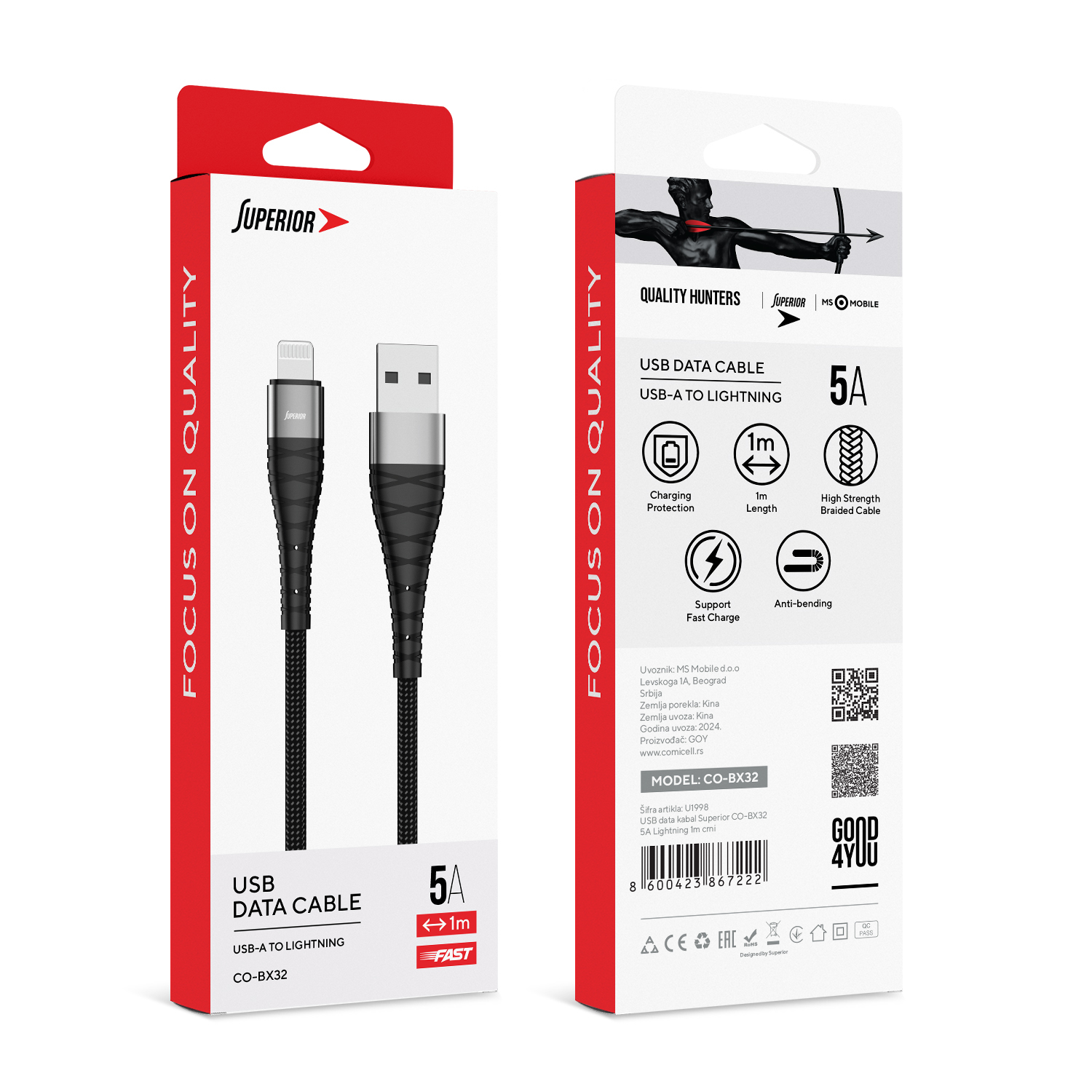USB data kabal Superior CO-BX32 5A Lightning 1m crni prodaja po AKCIJSKOJ ceni 1000 dinara u Beogradu i Srbiji. Originalno fabričko pakovanje USB data kabal Superior CO-BX32 5A Lightning 1m crni. Isporuka po Srbiji za 24h. Poručite telefonom ili online - telekoplus.com